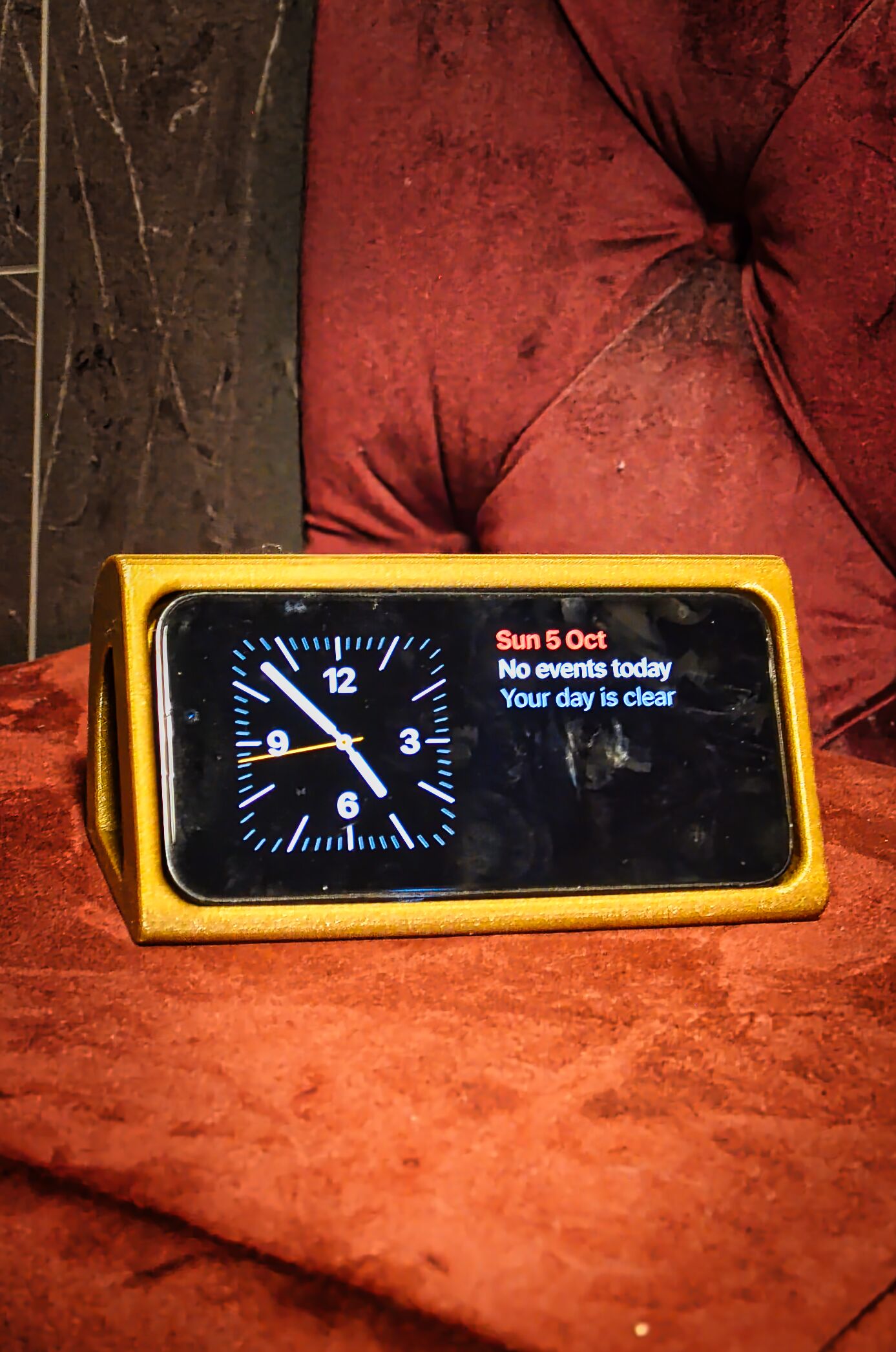 Designul curat și forma sa ergonomică permit poziționarea perfectă a telefonului, menținându-l într-un unghi ideal pentru vizualizarea ceasului, notificărilor sau utilizarea funcțiilor inteligente din modul Standby. Baza solidă oferă echilibru și siguranță, în timp ce structura geometrică minimalistă completează perfect decorurile moderne.